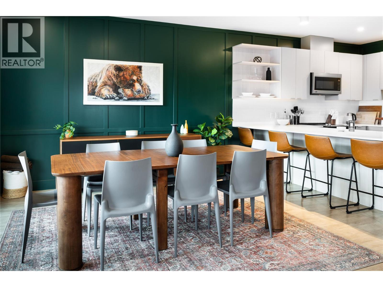 Welcome to the Revelstoke Mountain Penthouse at Mackenzie Village — a rare four-bedroom corner suite offering luxury mountain living and exceptional investment potential. This short-term rental–legal property is just minutes from Revelstoke Mountain Resort and directly across from the future Cabot Pacific Golf Course. Designed to impress, the residence showcases a bright open layout, designer Togo furnishings, curated local artwork, and glass doors leading to two private south and north facing balconies complete with hot tub and BBQ. The gourmet kitchen is fully equipped with modern appliances, seating for 8 at the dining table plus 4 at the breakfast bar. The primary suite includes a king bed, spa-inspired ensuite, and dual vanities. Two additional bedrooms offer a king and queen bed, while the fourth features a single-over-double bunk — perfect for guests or families. With 3 bathrooms, in-suite laundry, secure gear storage, and turnkey readiness with everything included, this home is perfectly set up for both personal use and rental success. Residents enjoy one standard parking stall along with an additional secure underground stall totalling 2 for the unit. With walkable access to Mackenzie Village amenities including a cafe, fitness studio, daycare, shops, and restaurants. Whether kept as a private retreat or leveraged as a high-performing rental, this property delivers the ultimate Revelstoke lifestyle. (id:17891)