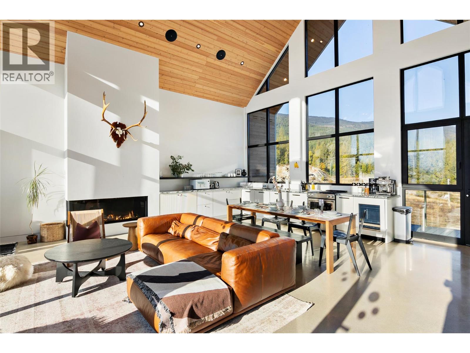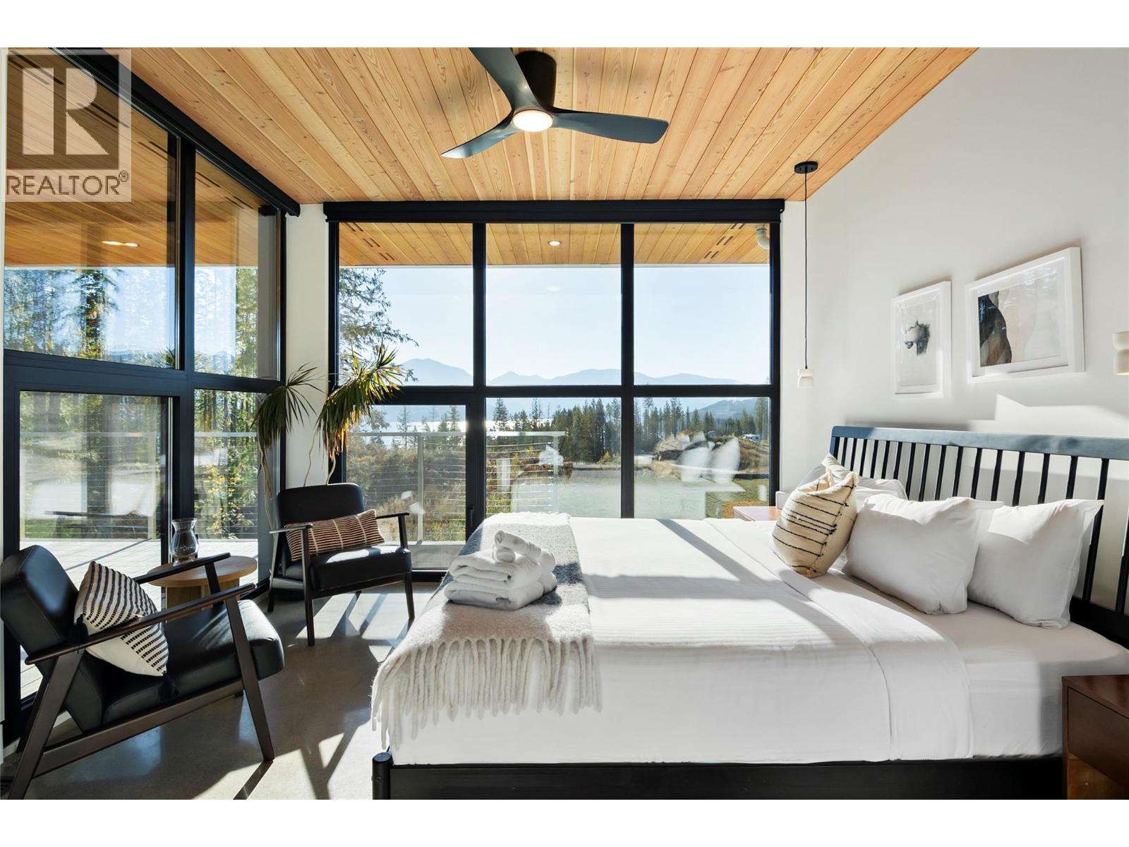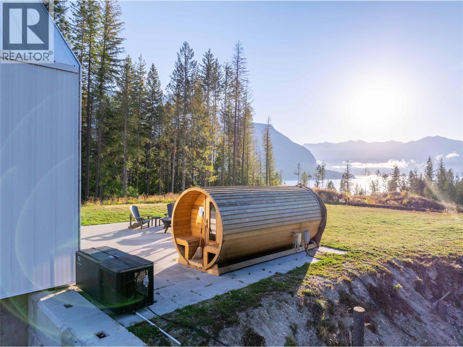 1950 Sidmouth Road is a singular offering, designed to inspire a deep connection from the moment you arrive. Set on 6.4 forested acres in the sought-after lakeside community of Shelter Bay, this exceptional home was crafted to harmonize with its natural surroundings. Showcasing striking architecture by SMPL Design Studio and premium, internationally-sourced finishes, the home is adorned with floor-to-ceiling, triple-pane imported European windows that frame stellar views of Upper Arrow Lake and the surrounding Selkirk Mountains. At its heart, this 4 bedroom / 2.5 bathroom home was built to bring people together and celebrate after a big day in the mountains. A breathtaking, open-concept kitchen/living/dining area is the focal point for gathering while a lower flex space is ideal for watching movies, yoga, working-out or a play area. Imagine your own spa-like wellness retreat complete with a cedar barrel hot tub, refreshing cold plunge, wood barrel sauna, and a steel fire pit — all set against a serene natural backdrop. With in-floor radiant heat, a high-efficiency heat pump, a high-performance window package, and a welcoming gas fireplace, this stunning home is as cozy as it is energy-smart. A private deck off the primary suite, a creek that runs through the property down to the lake and the ultimate garage / gear room are just a few more elements that make this property special. Don't just live - live well. Just 25 minutes to Revelstoke, yet a world away from the busy life. (id:17891)