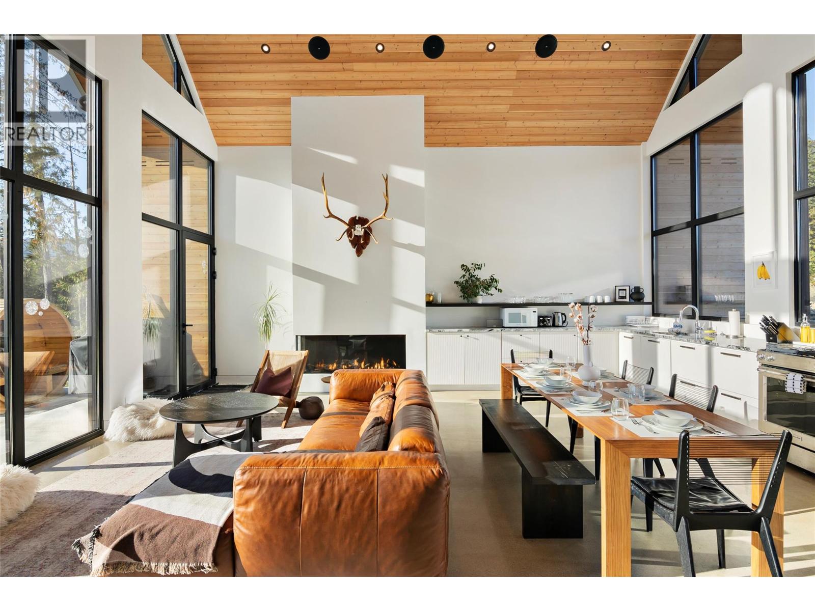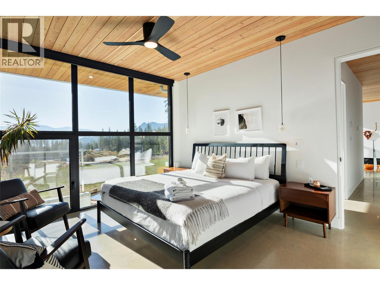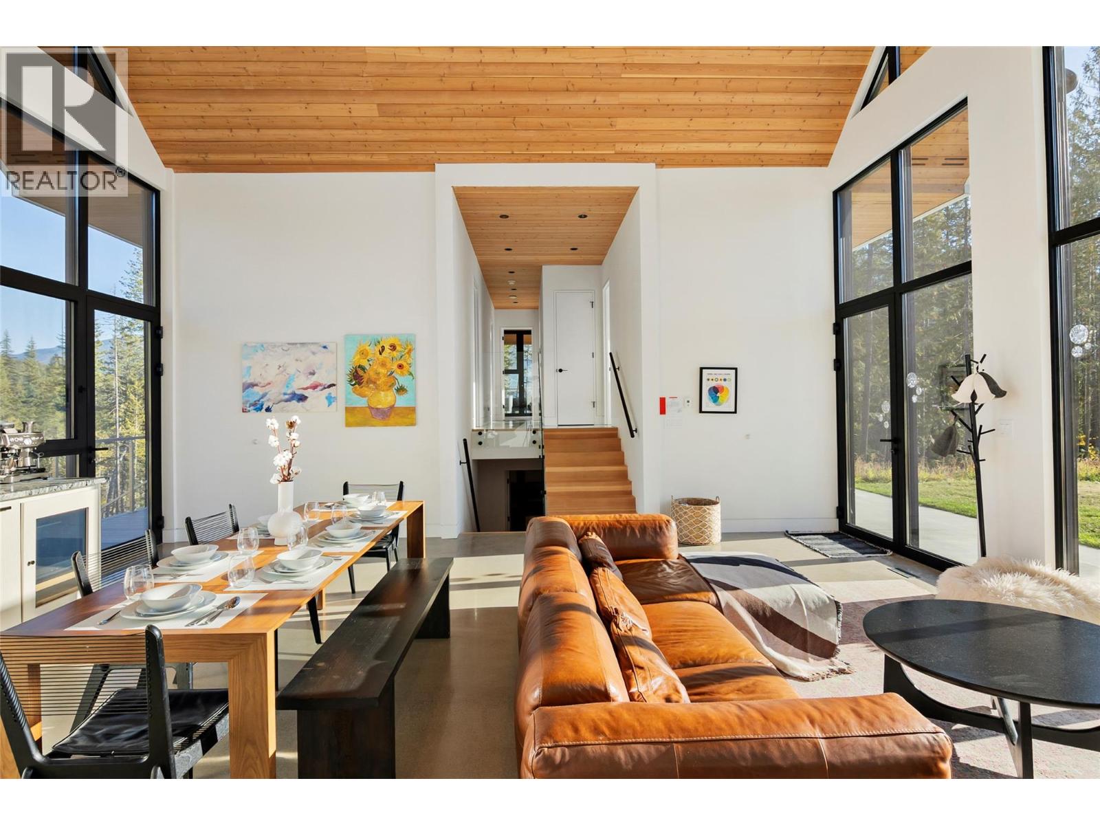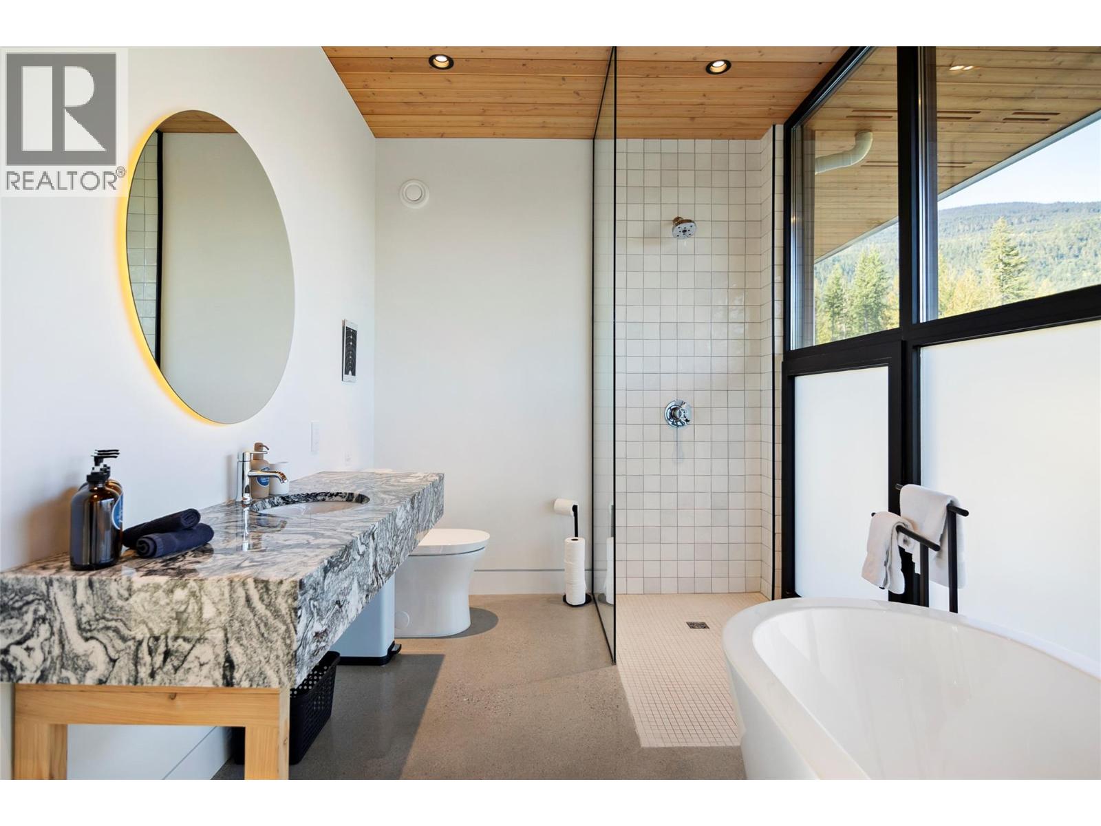 1950 Sidmouth Road is a singular offering, designed to inspire a deep connection from the moment you arrive. Set on 6.4 forested acres in the sought-after lakeside community of Shelter Bay, this exceptional home was crafted to harmonize with its natural surroundings. Showcasing striking architecture by SMPL Design Studio and premium, internationally-sourced finishes, the home is adorned with floor-to-ceiling, triple-pane imported European windows that frame stellar views of Upper Arrow Lake and the surrounding Selkirk Mountains. At its heart, this 4 bedroom / 2.5 bathroom home was built to bring people together and celebrate after a big day in the mountains. A breathtaking, open-concept kitchen/living/dining area is the focal point for gathering while a lower flex space is ideal for watching movies, yoga, working-out or a play area. Imagine your own spa-like wellness retreat complete with a cedar barrel hot tub, refreshing cold plunge, wood barrel sauna, and a steel fire pit — all set against a serene natural backdrop. With in-floor radiant heat, a high-efficiency heat pump, a high-performance window package, and a welcoming gas fireplace, this stunning home is as cozy as it is energy-smart. A private deck off the primary suite, a creek that runs through the property down to the lake and the ultimate garage / gear room are just a few more elements that make this property special. Don't just live - live well. Just 25 minutes to Revelstoke, yet a world away from the busy life. (id:17891)