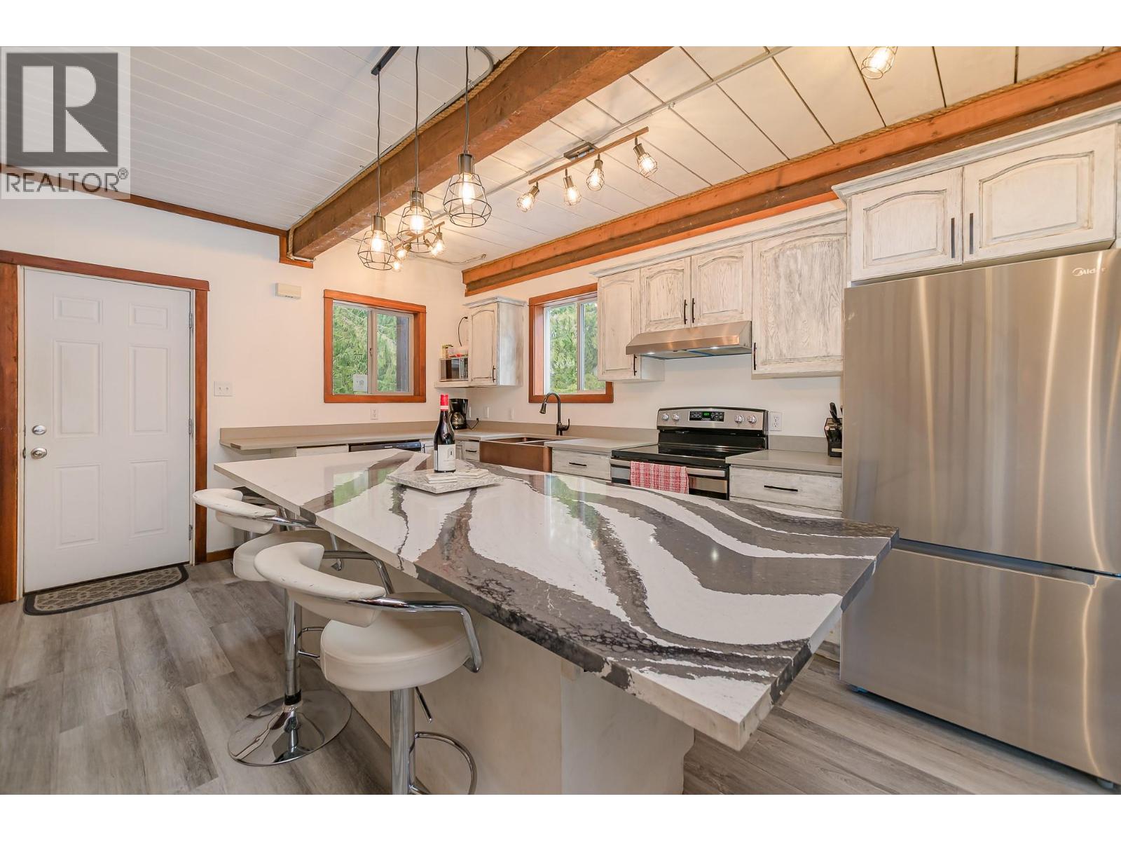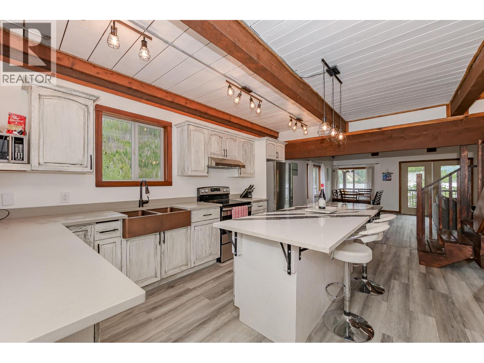 Set along the shores of pristine Three Valley Lake in the sought after *Sledder’s Cove*, this rare waterfront property offers 1.29 acres of private land with approximately 800 feet of beachfront. A custom timberframe home paired with a separate coach house creates an exceptional opportunity for full time living, recreation, or year round income generation. The main residence features 4 bedrooms and 2.5 bathrooms, designed to capture sweeping lake and mountain views. A wrap around deck, partially covered, extends your living space outdoors and includes a hot tub tucked discreetly beneath the covered section, ideal for relaxing in every season. An insulated oversized single garage includes a separate 1 bedroom apartment above, providing flexibility for guests, extended family, or rental income. Outdoors, the property continues to impress with a private beach, beachfront gazebo, fire pit area, boathouse, and storage shed. Launch a kayak or canoe from your own shoreline. With no zoning restrictions and a history as a B&B, the property offers excellent versatility. Located just 15 minutes from Revelstoke and 25 minutes from Sicamous, you are minutes from world class skiing, snowmobiling trails, golf, hot pools, and four season recreation. A rare opportunity to live, invest, and unwind in one of Three Valley Lake’s most iconic waterfront settings. (id:17891)